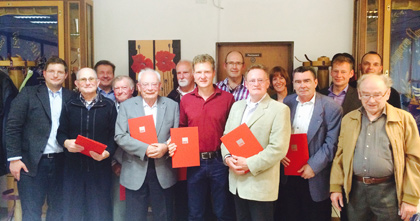 Auf dem Bild zu sehen: Alexander Koch, Gerhard Bergsträßer, Manfred Dittrich, Siegfried Stiller, Gebhard Bendel, Dieter Staesche, Peter Reitz, Volker Becker, Kurt Seiler, Heike Hofmann, Harald Naas, Ralf Möller, Patrick Koch, Erich Dietrich.