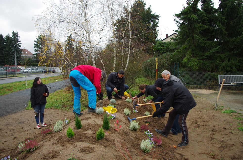 Der SPD Ortsbezirk Riedbahn hat am vergangenen Samstag zum Arbeitseinsatz eingeladen. Unter dem Motto „Akzente setzten für mehr Lebens-und Wohnqualität“ folgten mehrere Anwohnerinnen und Anwohner trotz Kälte und Dauerregen diesem Aufruf. Der SPD Ortsbezirk Riedbahn hatte sich vorgenommen, die Brachfläche hinter dem neuen Holzgeländer Ecke Wiesenstraße/Riedstraße zu bepflanzen. So zu sagen bunte Tupfen gegen grauen Himmel. Bis dato wurde der oftmals spöttisch als „Spargelacker“ bezeichnete Hügel von wagemutigen Fahrradkids zum Offroad fahren genutzt. Bei einer ähnlich gearteten Aktion vor zwei Wochen in Schneppenhausen waren mehrere Hundert Blumenzwiebeln und einige Stiefmütterchen übrig geblieben. Diese, sowie andere private Pflanzenspenden, wurden von fleißigen Helfern über den Hügel verteilt. Besonders freute sich das engagierte Pflanzteam über eine umfangreiche Spende der Gärtnerei Brunner. Spontan stiftete Ursel Brunner sechs Steigen Beetpflanzen für diese Ortsteilaktion. Da der Regen das Angießen überflüssig machte, konnten die Hobbygärtner sich nach getaner Arbeit bei Glühwein, Kaffee, Würstchen oder Stollen aufwärmen und erholen. Der Vorstand des SPD Ortsbezirks Riedbahn bedankt sich ganz herzlich bei allen Helferinnen und Helfern für ihren Einsatz!
