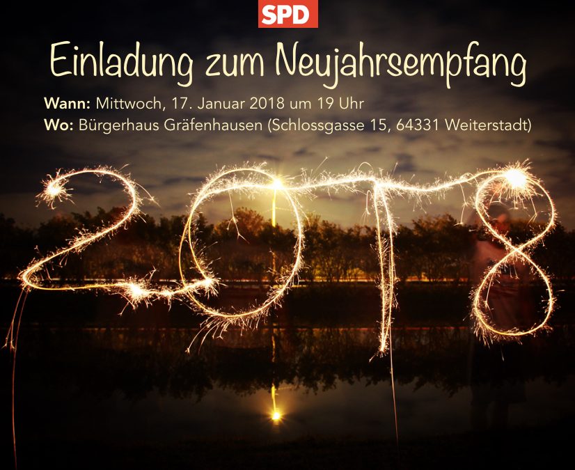 Die SPD Weiterstadt wünscht allen Bürgerinnen und Bürgern ein frohes und erfolgreiches Jahr und lädt ganz herzlich zum Neujahrsempfang am 17.01.2018 um 19 Uhr in das Bürgerhaus Gräfenhausen ein!