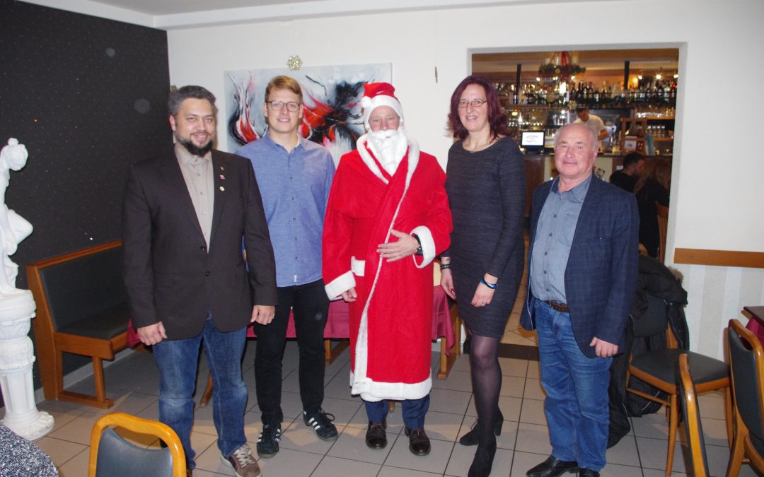 Passend zum Nikolausabend lud die Riedbahn-SPD zur alljährlichen Weihnachtsfeier in die Pizzaria Napoli ein. Um in dieser terminintensiven Vorweihnachtszeit etwas für Entlastung zu sorgen, wurde vor Beginn der Weihnachtsfeier die Jahreshauptversammlung gelegt. Hier berichtete Stephan Geter (Vorsitzender des SPD Ortsbezirks Riedbahn) kurz über Neuigkeiten aus der Lokalpolitik mit Schwerpunkt auf die angespannte Verkehrslage an verkaufsstarken Tagen. Etwa 35 Gäste begrüßte er anschließend zum gemütlichen Teil des Abends, darunter den 1. Stadtrat Werner Thalheimer und den Ortsvereinsvorsitzenden Julius Schafhausen. Mitten in seiner Rede ging die Tür ein weiteres Mal auf um den ranghöchsten Weiterstädter Nikolaus alias Bürgermeister Ralf Möller herein zu lassen. Zur großen Freude aller, trug der rotgewandete Herr den Gästen auch noch ein Gedicht vor. Es trug den Namen „Weihnachtsverkehr“ und erntete eine Menge Lacher. Zum Glück hatte der Nikolaus den Knecht Rupprecht unterwegs abgehängt, so dass keiner die Rute fürchten musste und alle den Abend genießen konnten. Geter versäumte es nicht, sich ausdrücklich für die Organisation und das Richten der kleinen süßen Tüten bei Ursula Scherer zu bedanken. Sie sei seine ganz persönliche Elfe, ohne die solche Veranstaltungen nicht denkbar wären. Der weiblichen Unterstützung nicht genug, ergriff Helga Körner noch das Wort. Ihr verstorbener Mann Gerd Körner war lange Jahre Vorsitzender des Ortsbezirkes und hatte vor einigen Jahrzehnten ein Wappen für die Riedbahn entwerfen lassen. Diese Aufkleber fand Helga Körner beim Aufräumen und verteilte sie nun als kleines Andenken unter den Anwesenden. Geter bedankte sich auch bei seinem „Christkind“ und nachdem der offiziellen Worte genug gewechselt waren, der Nikolaus wieder zum Bürgermeister wurde, nahm ein gemütlicher Abend seinen Lauf. Die Riedbähner bewiesen Sitzfleisch, denn fast bis Mitternacht herrschte entspannte Stimmung und gute Unterhaltung. Die Riedbahn-SPD bedankt sich recht herzlich bei all ihren Gästen und natürlich auch bei der Pizzaria Napoli, die schon seit vielen Jahren Gastgeber für dieses traditionelle Event ist.