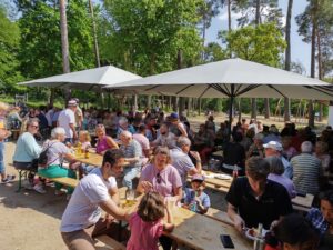 Während die kleinen Gäste sich bei sommerlichen Temperaturen auf dem schönen Gelände ordentlich austoben konnten und die Energiereserven immer mal durch Pommes, Apfelschorle oder frische Erdbeeren mit Sahne auffüllten, genossen die vielen „großen“ Besucher Leckereien vom Grill mit einem erfrischenden Glas Erdbeerbowle oder gezapftem Bier im Schatten der großen Sonnenschirme.