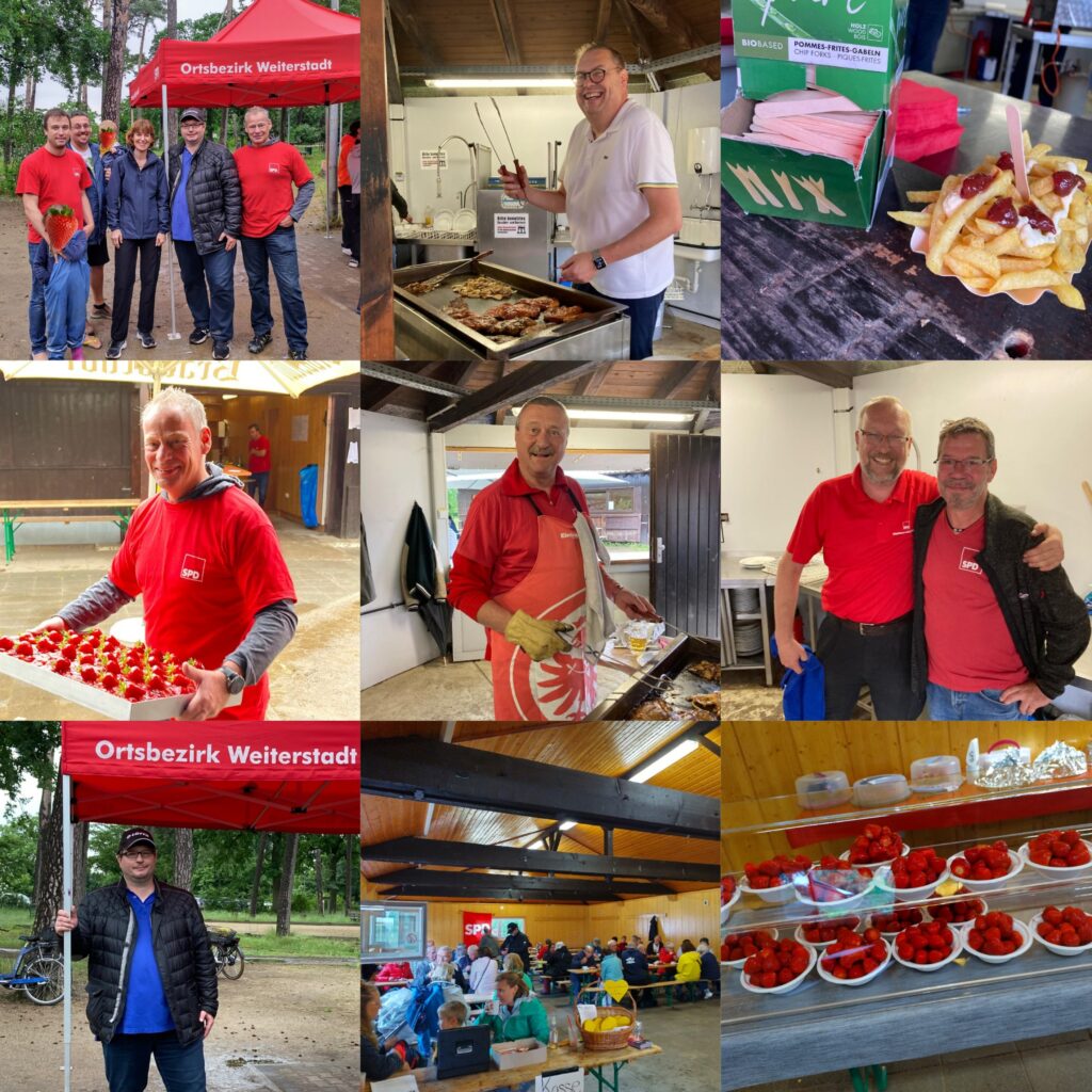 Trotz des unbeständigen Wetters haben es sich gestern viele Weiterstädter ausgestattet mit Schirm oder Regenjacke nicht nehmen lassen spontan das Erdbeerfest der SPD Weiterstadt zu besuchen.