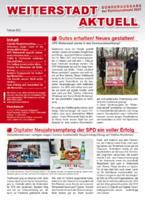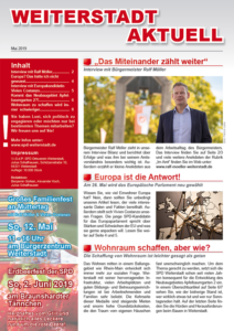 Unsere eigene Zeitung „Weiterstadt aktuell“ geben wir mehre Male im Jahr heraus. Sie wird über unsere Mitglieder oder die örtlichen Zeitungen flächendeckend in alle Haushalte verteilt.